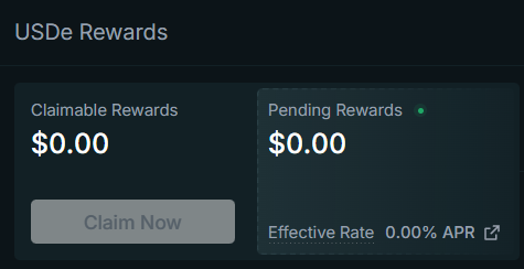 USDeの利回りは一週間ごとに配布され、「Portfolio」ページの「Claim Now」より手動で請求します。