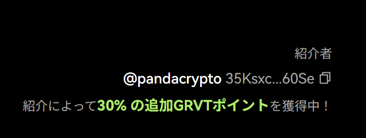 grvtをプラチナランクの紹介コード・紹介リンク経由で利用することで、獲得できるGRVTポイントが30%増えます。